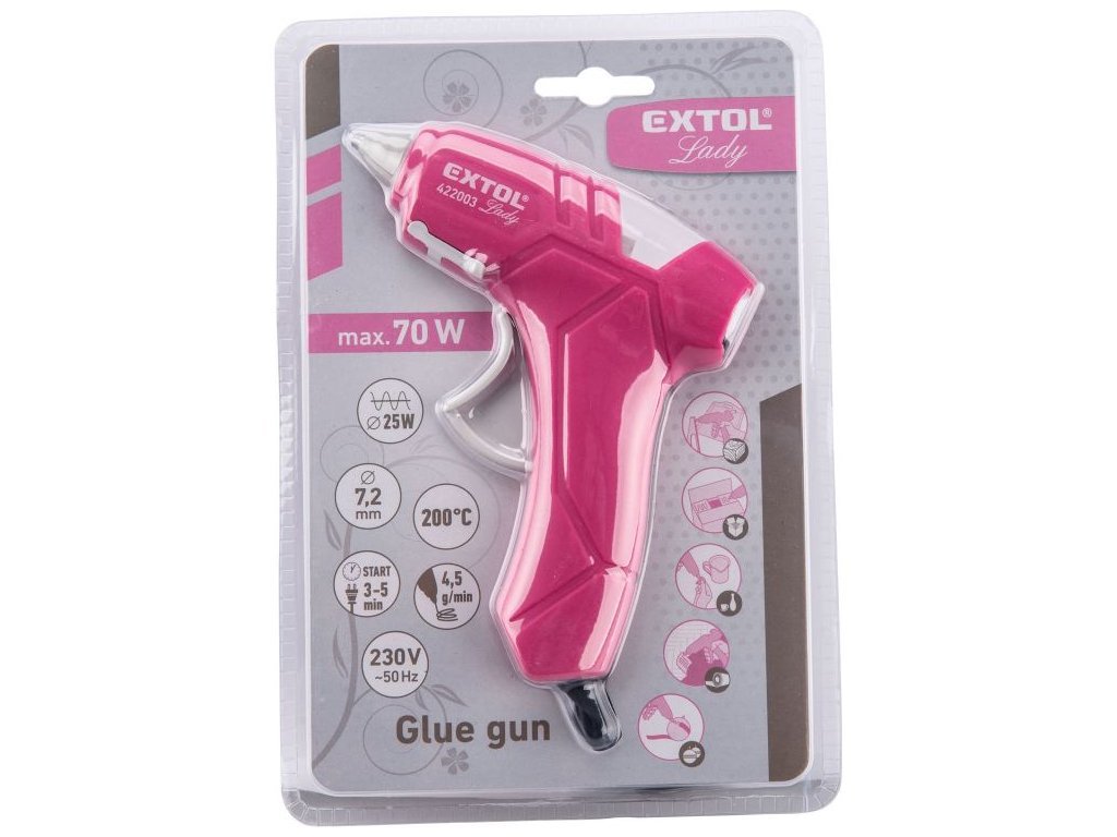Pistole tavná lepící, pr.7,2mm, 25W, růžová EXTOL LADY