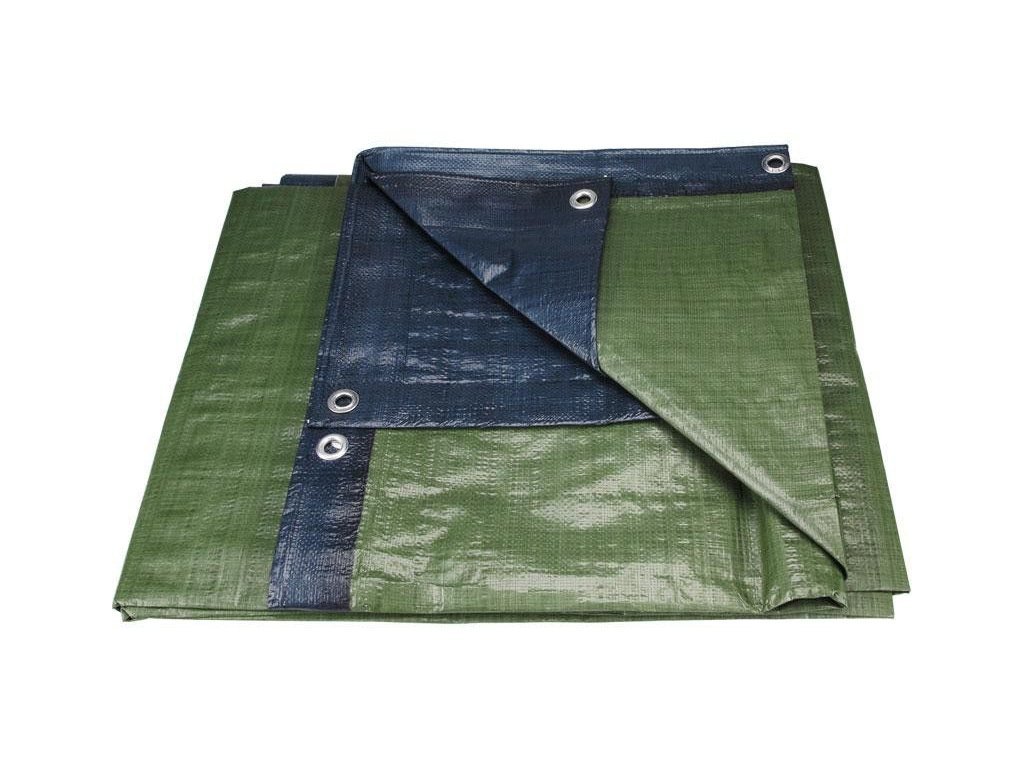 Zesílená polyetylenová krycí plachta v zelenomodré barevné kombinaci s oboustrannou laminací, hliníkovými oky každých 50cm a zesílenými okraji. Odchylka od udávaných rozměrů/gramáže +-3-7% (dle velikosti plachty).