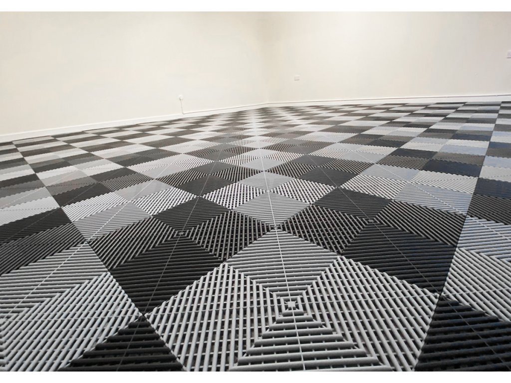 Systém designových modulárních perforovaných dlaždic je vhodný pro použití v garáži, showroomu, prodejně nebo v jakýchkoliv pracovních prostorech.