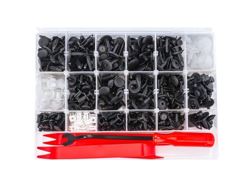 Plastové spojovací kolíky, příchytky a nástroje na demontáž - sada 420 ks. Tato univerzální a praktická sada je navržena pro všechny automobilové nadšence, kutily a profesionály, kteří chtějí mít vždy po ruce spolehlivé a odolné nástroje.