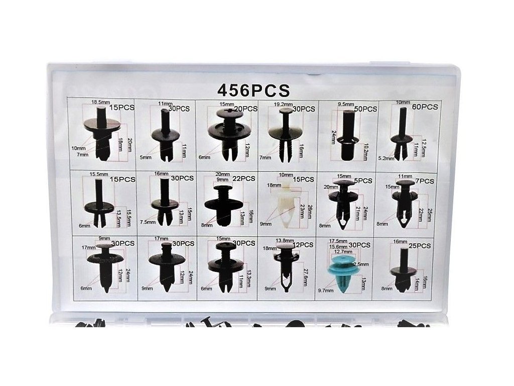 Při výměně auto/moto dílů se vám tato praktická sada bude hodit. Obsahuje nejběžnější rozměry spojovacích kolíků a příchytek do interiéru a exteriéru vozidel, motocyklů, karavanů a pod...