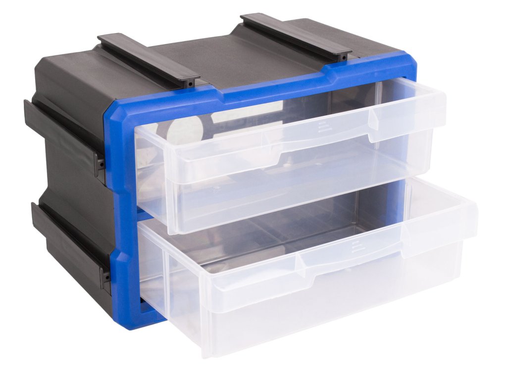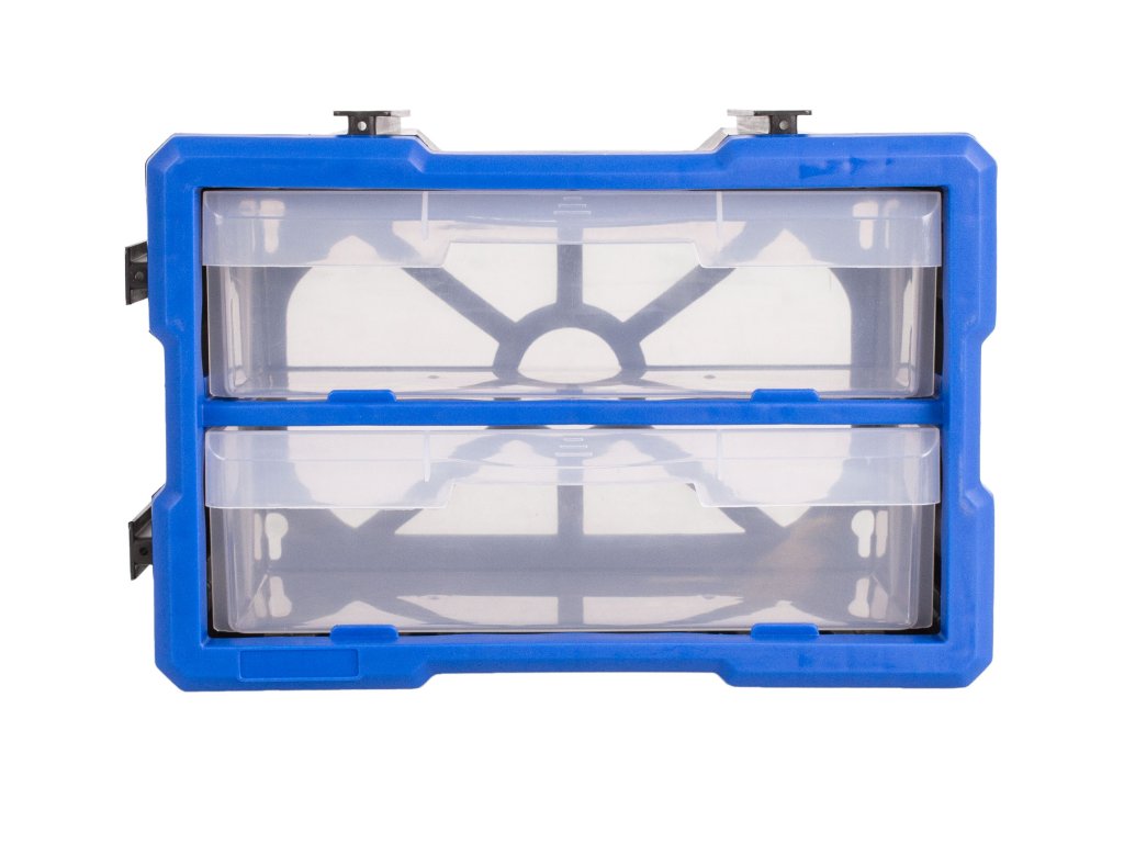 Plastový organizér se 2-ma velkými průhlednými boxy, vhodný např. pro uskladnění a přehledné rozdělení šroubků, matic a dalšího nářadí, které by se mohlo zakutálet a ztratit. Každý box má jednu přepážku, kterou můžete vyndat, takže si u každého boxíku můžete vybrat, jestli chcete jedno nebo dvě skladovací místa.