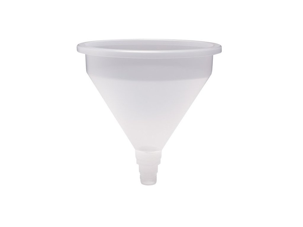 | objem trychtýře materiál průměr trychtýře horní průměr spodního výtoku průtočné množství výška hmotnost | 10 l polypropylen 355 mm 42 mm 60 l/min 348 mm 0,71 kg |
