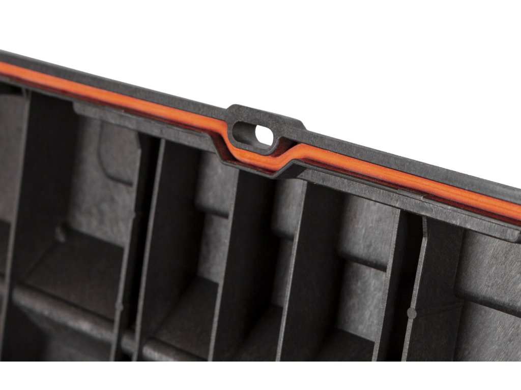 Integrované vodní těsnění zamezí přístupu vody k nářadí nebo předmětům uvnitř kufru.
