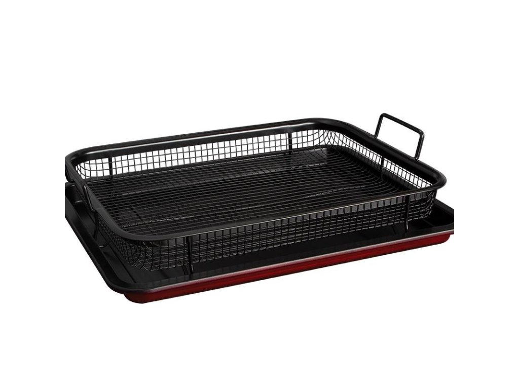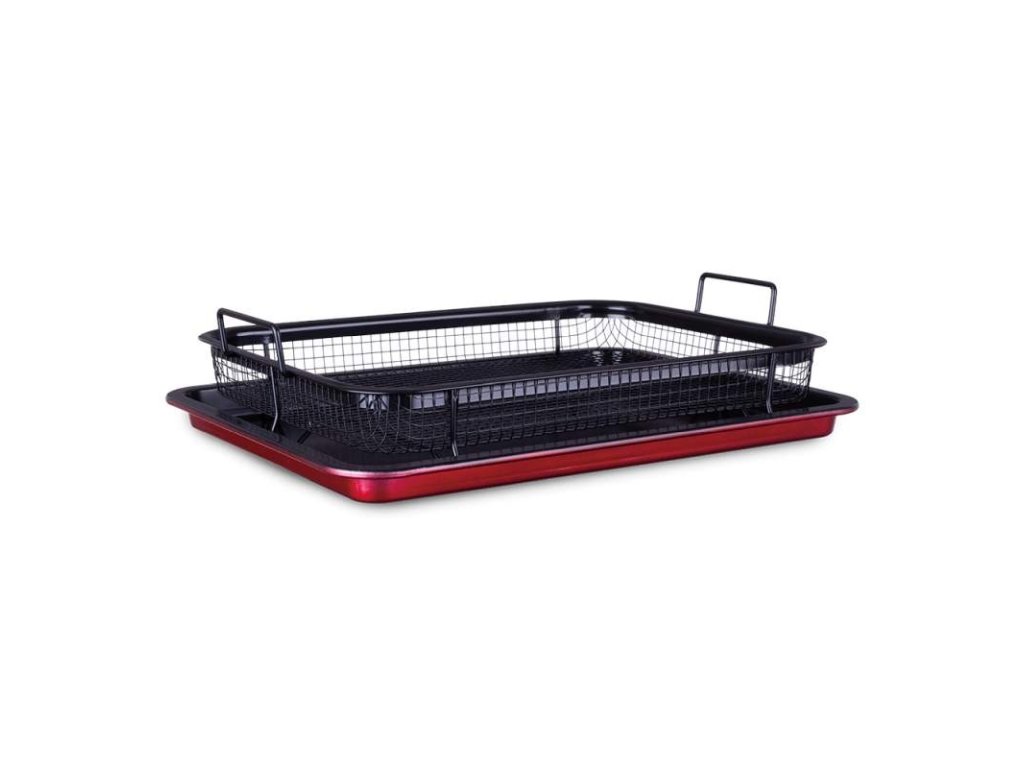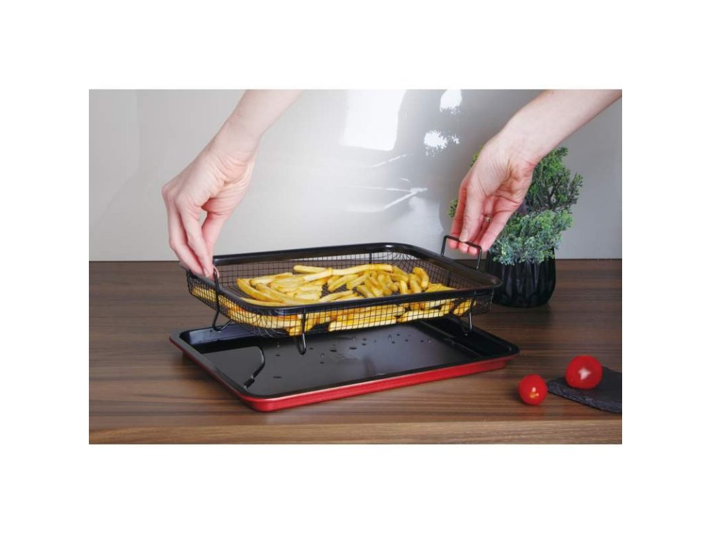 Materiál: uhlíková ocel s titanovým nepřilnavým povrchem, kovový koš z nerezové oceliVelikost tácu: 32,5 x 24,5 x 2 cm