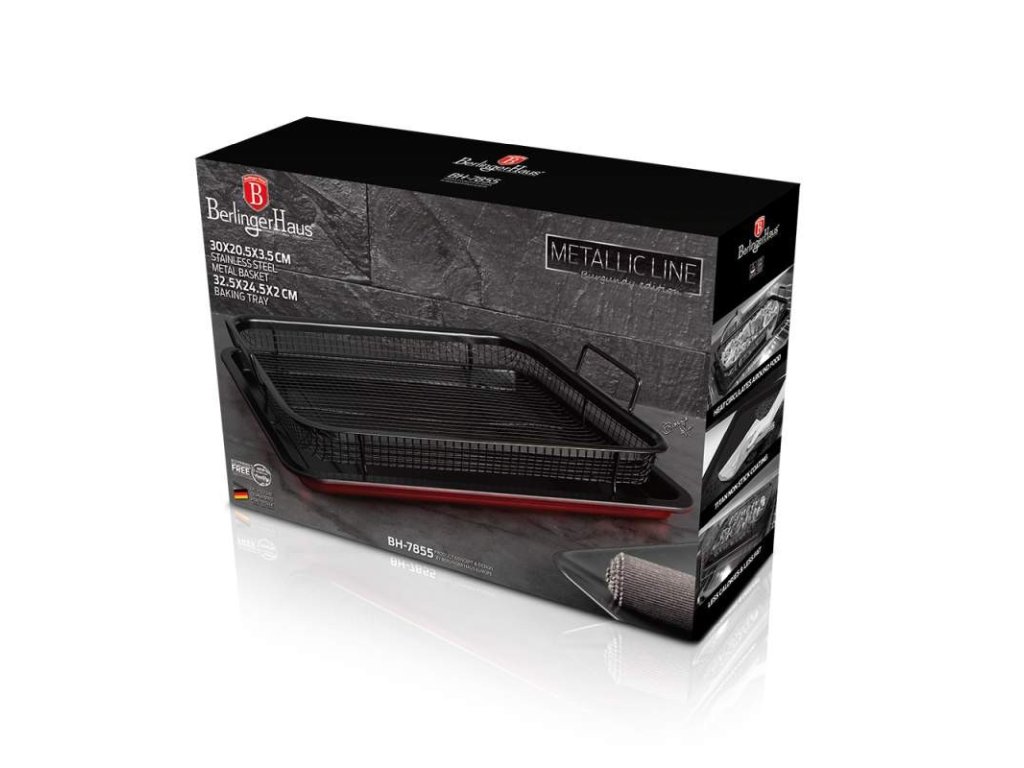 Plech na pečení s nepřilnavým povrchem a kov. košem Burgundy Metallic Line 32,5x24,5x2 cm
