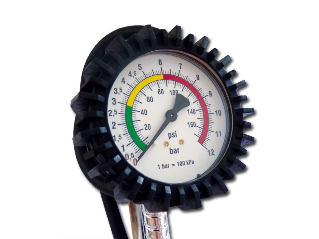 Univerzální hustič na kontrolu tlaku v kolech a jejich nahuštění (nafoukání) na předepsanou míru. Snadno se ovládá – vzduch se pouští velkou pákou u rukojeti, v orientaci pomáhá kulatý tlakoměr s barevně rozdělenou stupnicí. Pro odolnost proti nárazu má manometr gumový ochranný návlek.