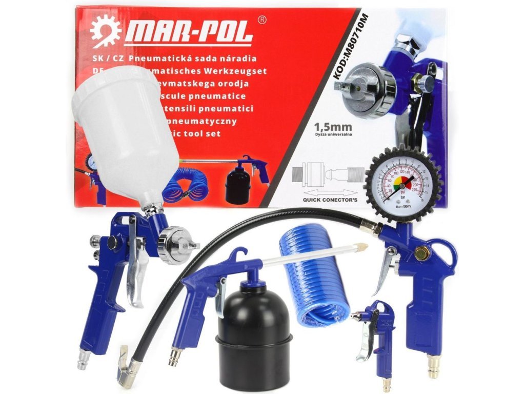 Praktická sada pneumatických nástrojů pro malování, lakování, foukání, stříkaní, čištění a nafukování.