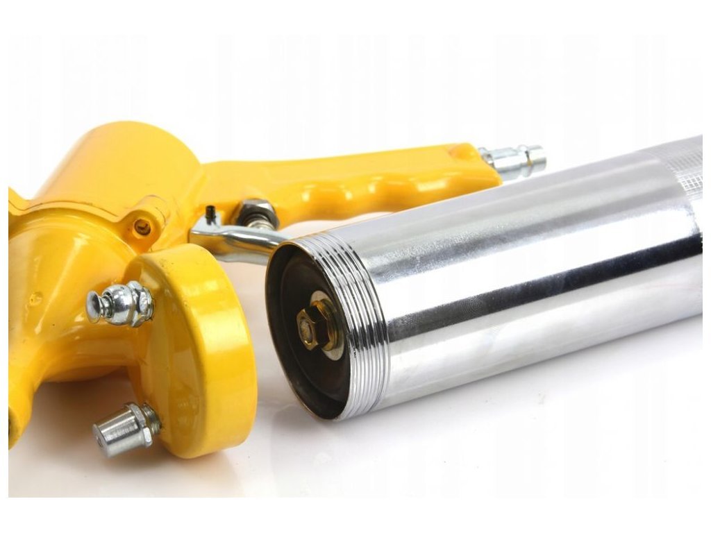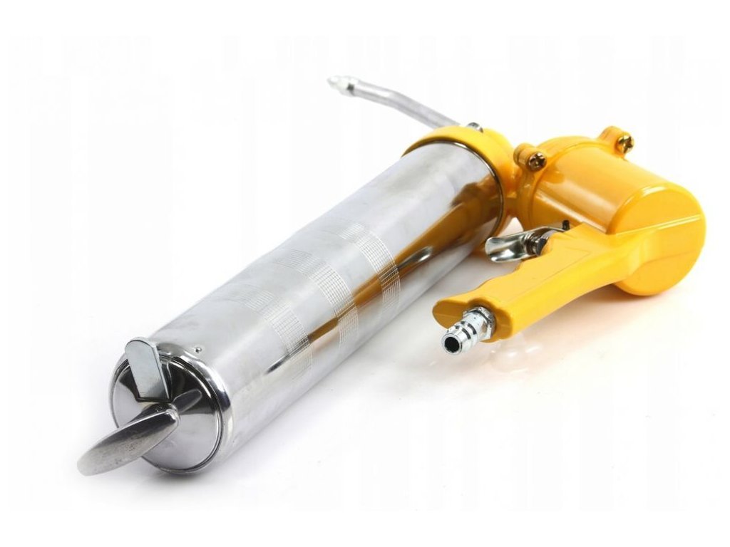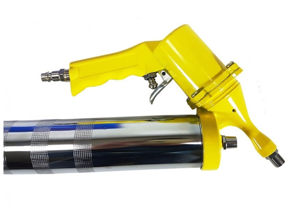 Pneumatický mazací lis pro tlakové mazání běžnými plastickými mazivy. Ideální k mazání mechanických nástrojů a strojů. Včetně ruční páky - tak lze přístroj používat i jako ruční pákový mazací lis. Lis je dodáván včetně tří zasouvacích koncovek, které umožňují dostat se i do těžko přístupných míst.