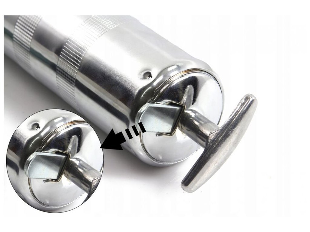 Pneu maznice je určená k aplikaci maziv z kartuší (→ 400 g patrony) i velkoobjemových zásobníků.