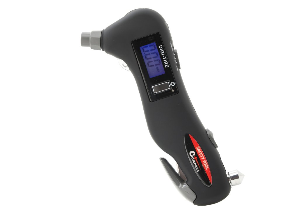 Digitální pneuměřič s celou řadou bezpečnostních doplňků pro nouzové použití např. při dopravní nehodě. Ideální kombinace pomocníků na cesty, doporučujeme vozit stále v autě, například v kapse dveří řidiče. Budete tak mít všechny potřebné nástroje vždy po ruce.