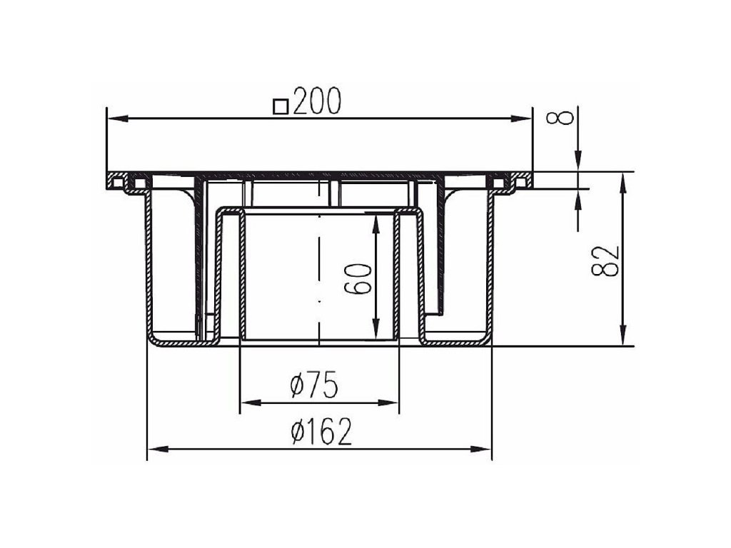 Podlahová vpusť spodní D 75 200x200mm, bílá