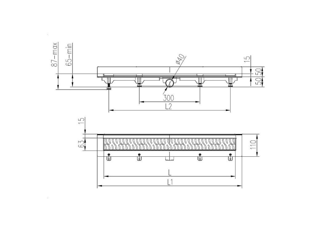 Minimální stavební výška je 65 mm a žlab je výškově nastavitelný.