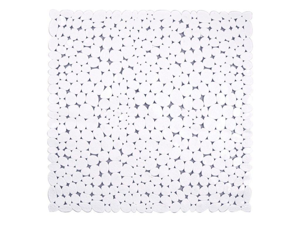 Kvalitní čtvercová bílá koupelnová podložka s oblázkovým motivem.Ze spodní strany má protiskluzové přísavky pro zajištění bezpečnosti v koupelně.