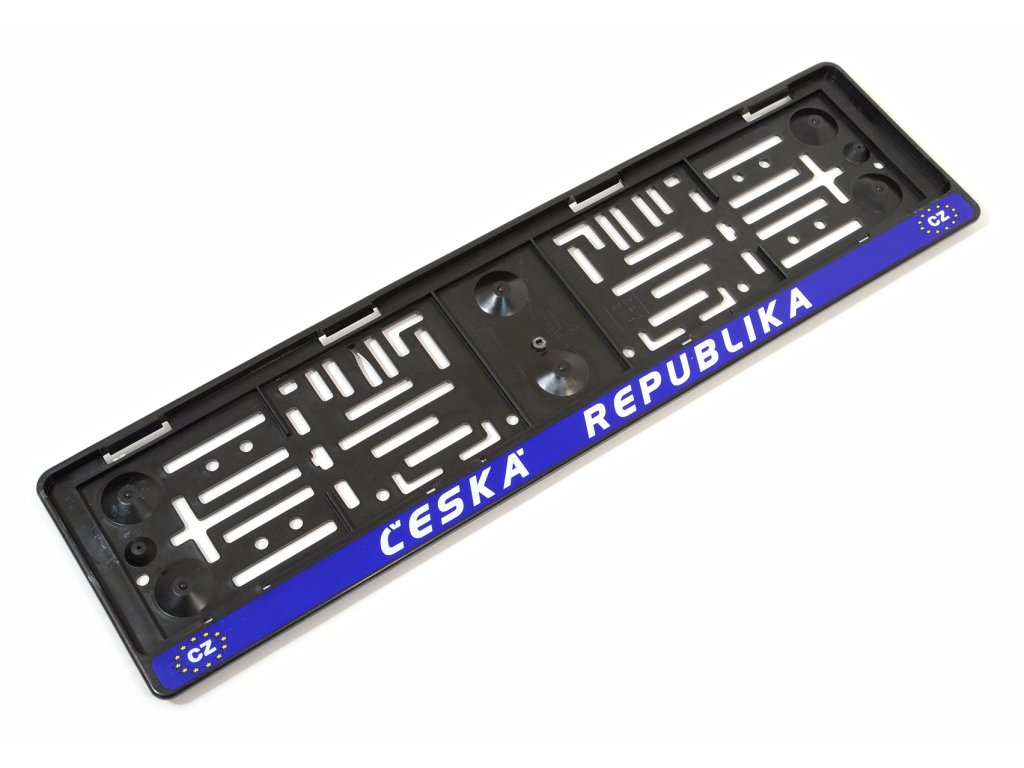Plastová podložka pod státní poznávací značku nebo tabulku registrační značky, otvory pro univerzální montáž. S nápisem Česká republika ve stylu EU.