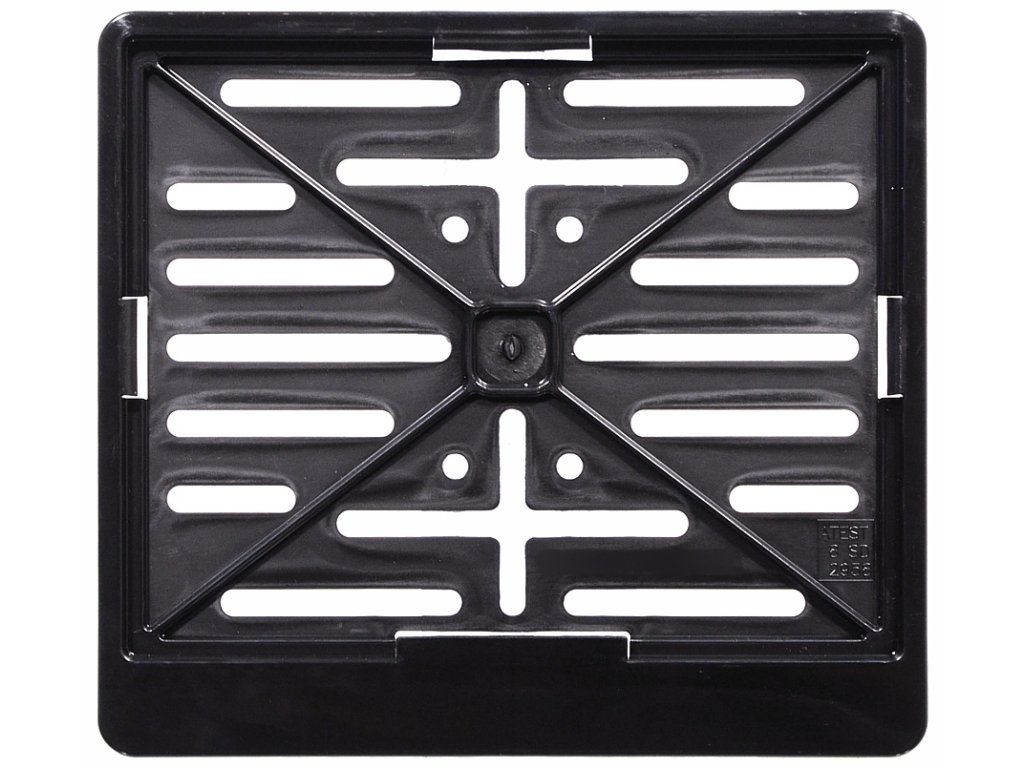 Plastová podložka pod státní poznávací značku nebo tabulku registrační značky, otvory pro univerzální montáž. Určeno pro motocykly (rozměr značky 200 x 160 mm).
