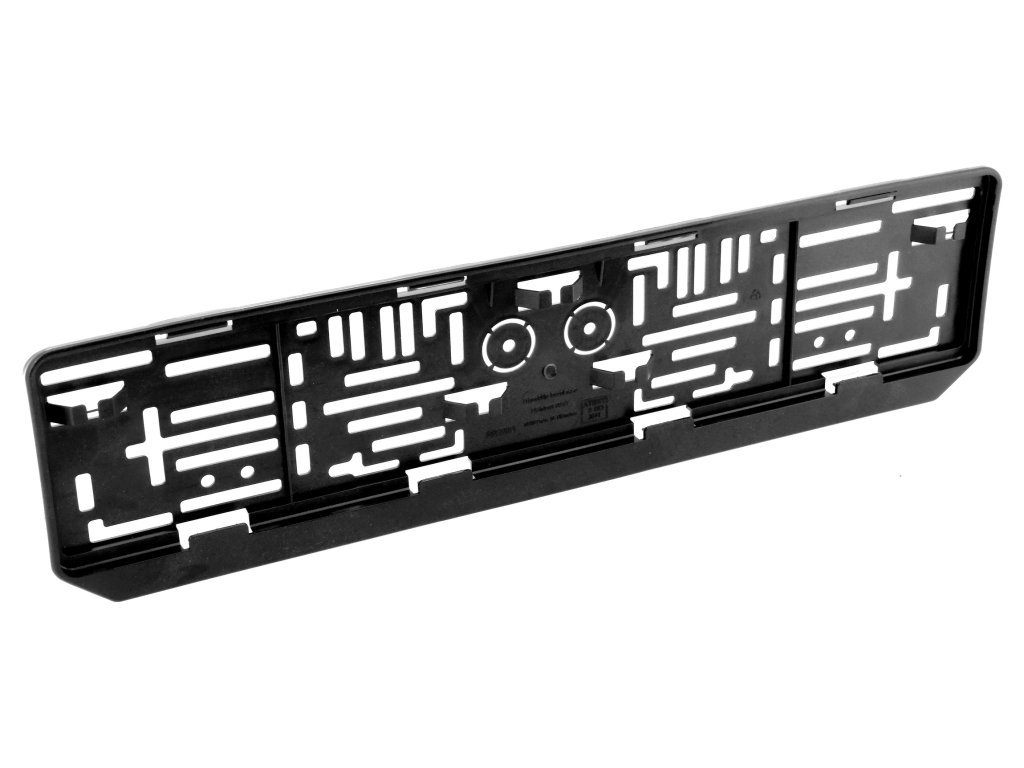 Plastová podložka pod státní poznávací značku nebo tabulku registrační značky, otvory pro univerzální montáž.