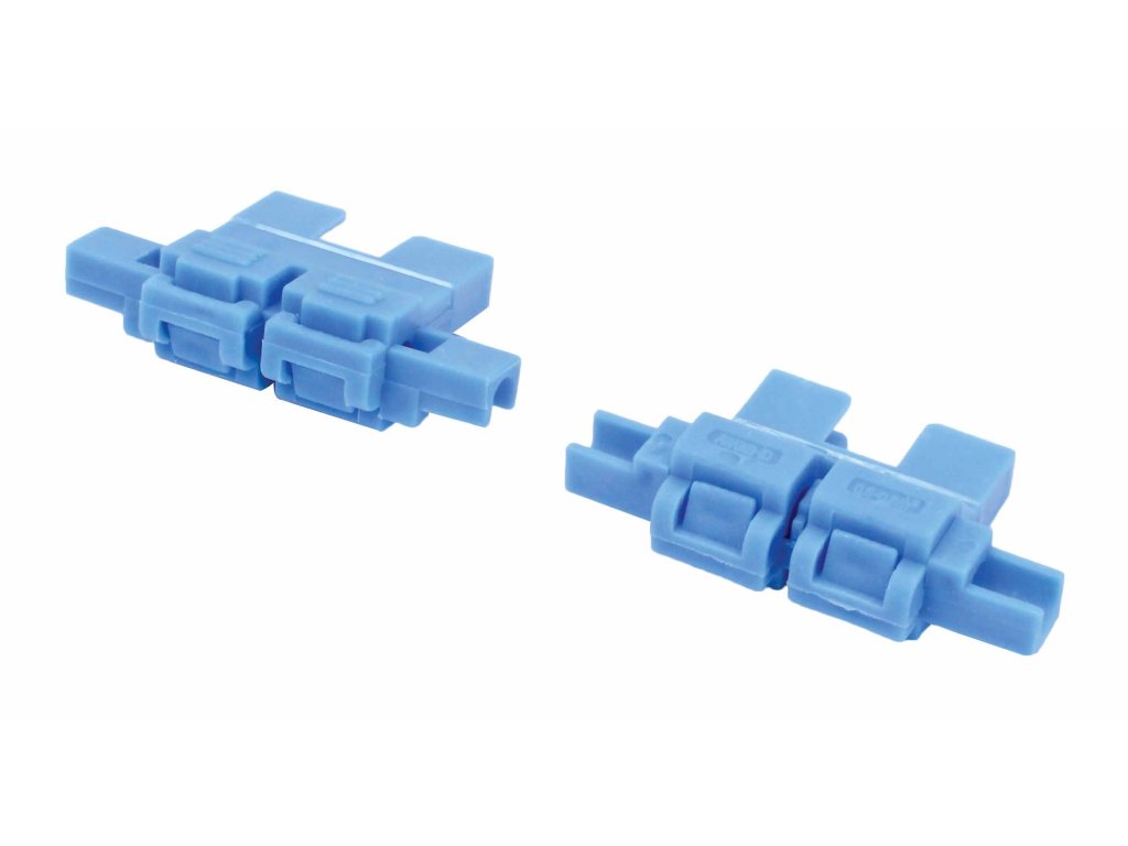 Plastové pouzdro na nožové pojistky se jednoduše „nacvakne“ na drát a vytvoří místo jištěné pojistkou.