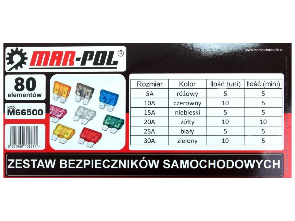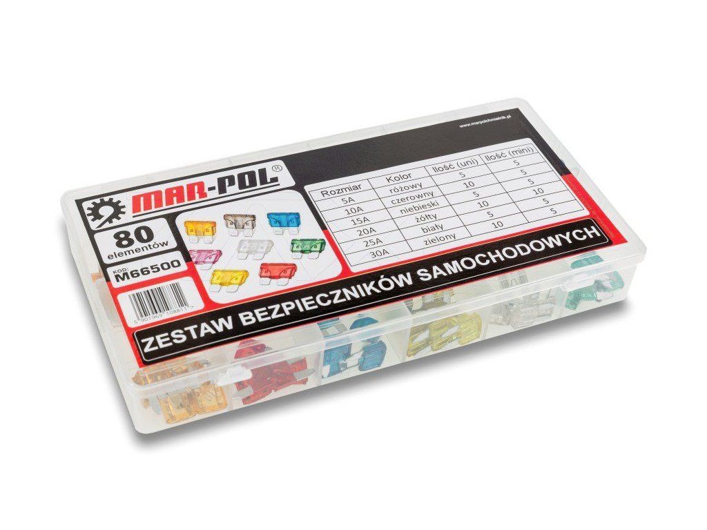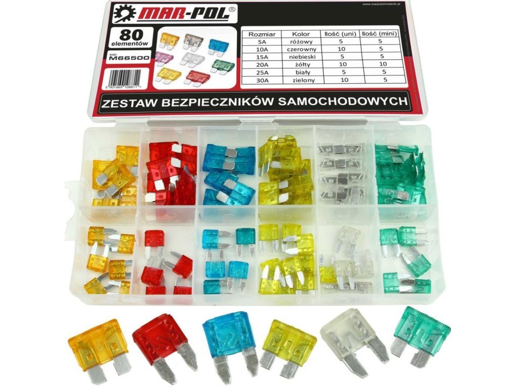 Pojistky automobilové (standart, mini), sada 80ks MAR-POL