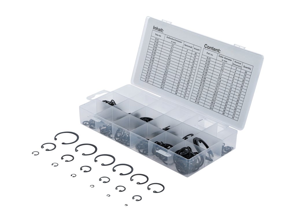 Popis: • 300 dílů sada. • Vnitřní. O 3 mm - 20 ks O 14 mm - 15 ks O 4 mm - 10 ks O 15 mm - 20 ks O 5 mm - 15 ks O 19 mm - 25 ks O 6 mm - 25 ks O 20 mm - 15 ks O 8 mm - 15 ks O 22 mm - 20 ks O 9 mm - 20 ks O 25 mm - 15 ks O 11 mm - 15 ks O 26 mm - 15 ks O 12 mm - 15 ks O 28 mm - 10 ks O 13 mm - 25 ks O 32 mm - 5 ks