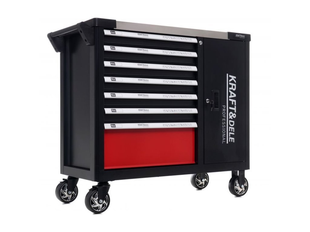 Pojízdný dílenský vozík se sadou nářadí 299ks, 7 polic KRAFT&DELE