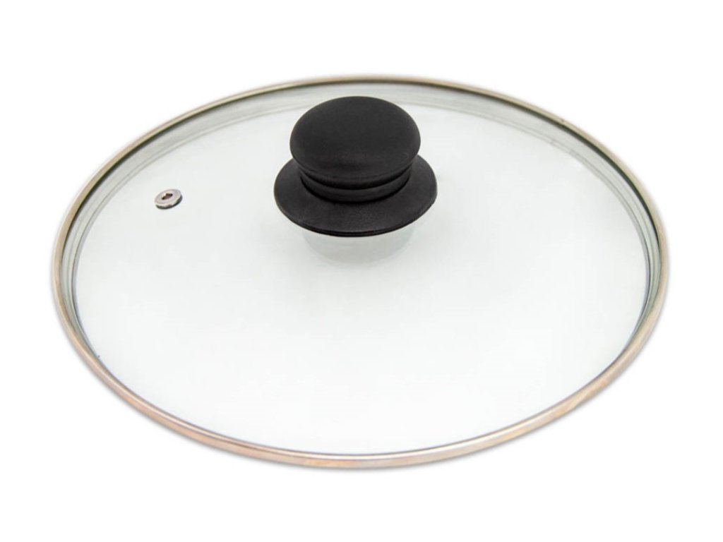Skleněná poklice s plastovým úchytem a otvorem pro únik přebytečné páry.Využijete ji na hrnec, kastrol, rendlík nebo pánev.