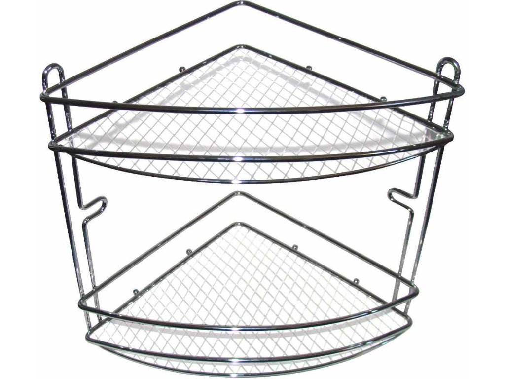 Kvalitní koupelnová dvoupatrová police vyrobená z chromovaného drátu.Rozměry 21 x 21 x 26 cm.