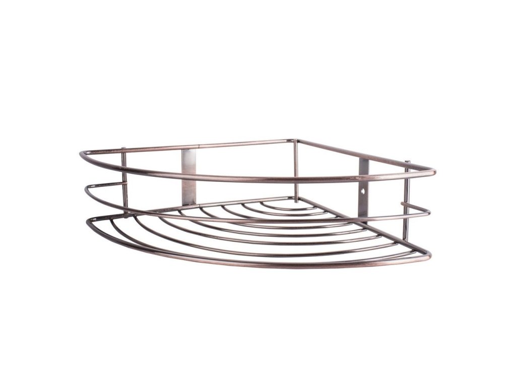 Kvalitní rohová koupelnová polička nebo držák na mýdlo, vyrobená z lakovaného drátu v měděné barvě.Polička je díky svému tvaru vhodná také do kuchyně apod.