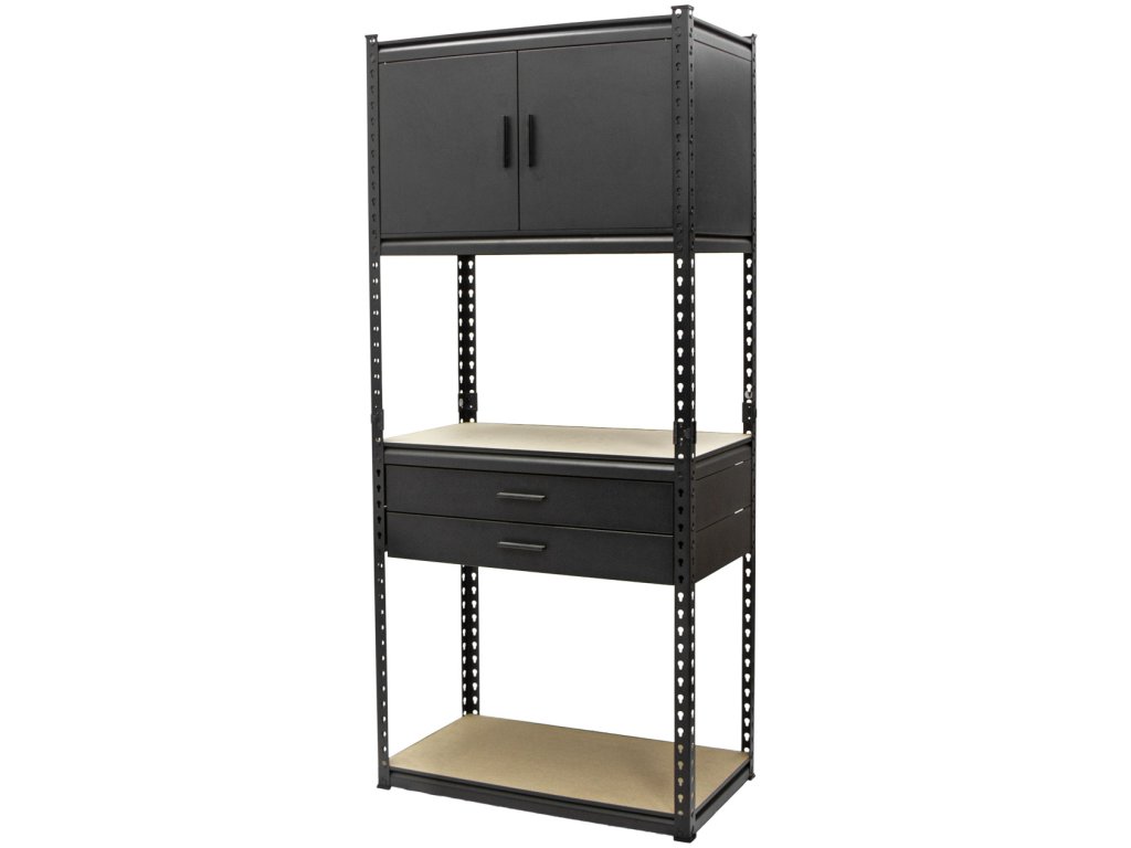Policový regál + horní skříňka a 2 zásuvky, 815 x 465 x 1825 mm - AH034F