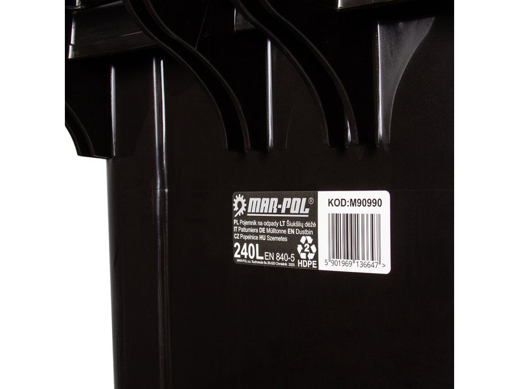 Plastová popelnice MAR-POL o objemu 240 litrů je určena pro místa s vyšší produkcí odpadu. Díky velkému objemu sníží frekvenci vývozu a ušetří čas i náklady. Černá barva je praktická a nenáročná na údržbu.