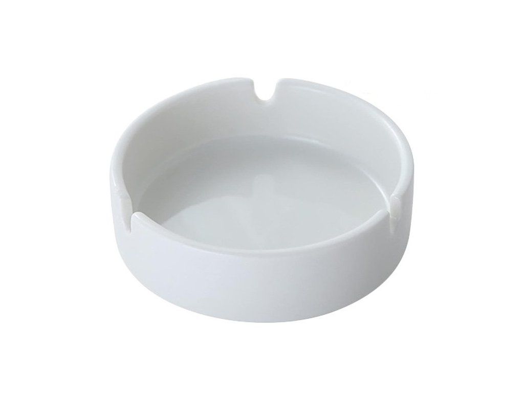 Popelník z bílé keramiky.Průměr 10 cm a výška 3.5 cm.