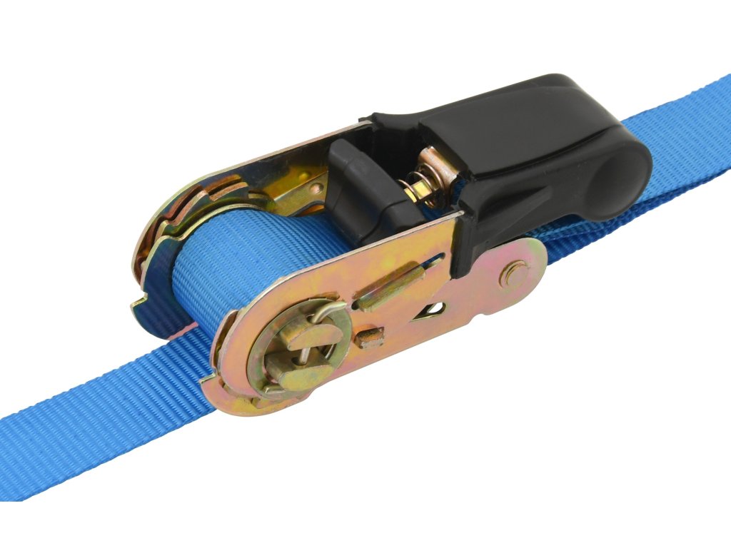 Pro upnutí se využívá celokovová ráčna s jisticím mechanizmem. Konce popruhů jsou osazeny háky, potaženými tvrzeným plastem pro lepší manipulaci.