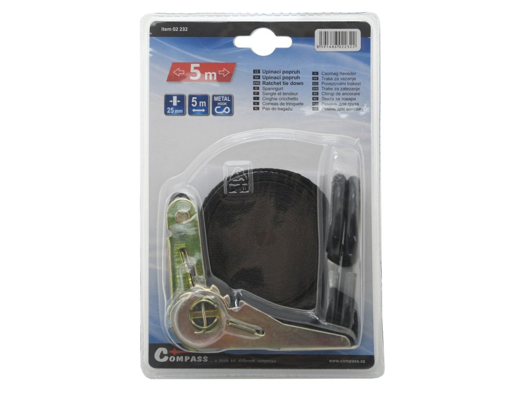 Popruh s ráčnou a háky 5m