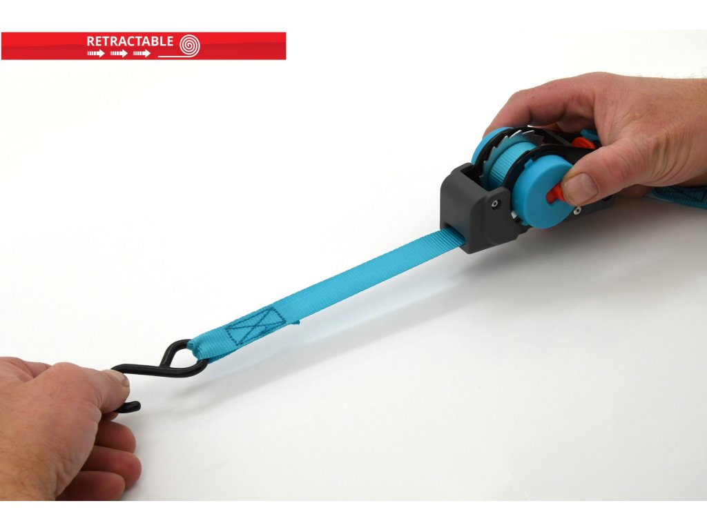 Popruh s ráčnou a háky samonavíjecí 100daN 2m TÜV BLUE WAY