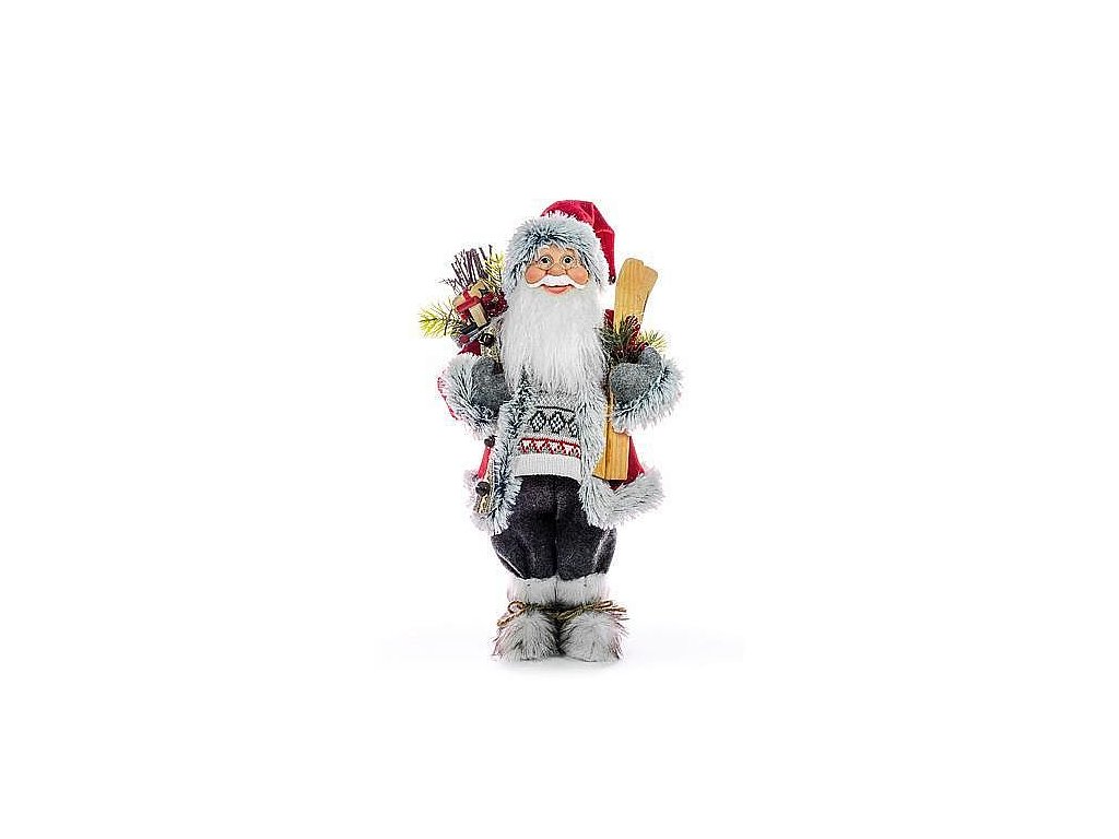 Postavička MagicHome Santa s lyžemi a dřevem, 60cm