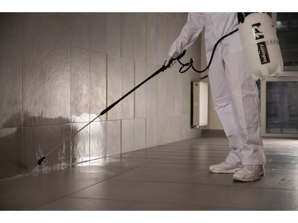 Průmyslový postřikovač se hodí pro rozprašování chemicky aktivních činidel na součásti z nerezové oceli ve výrobních závodech a továrnách.