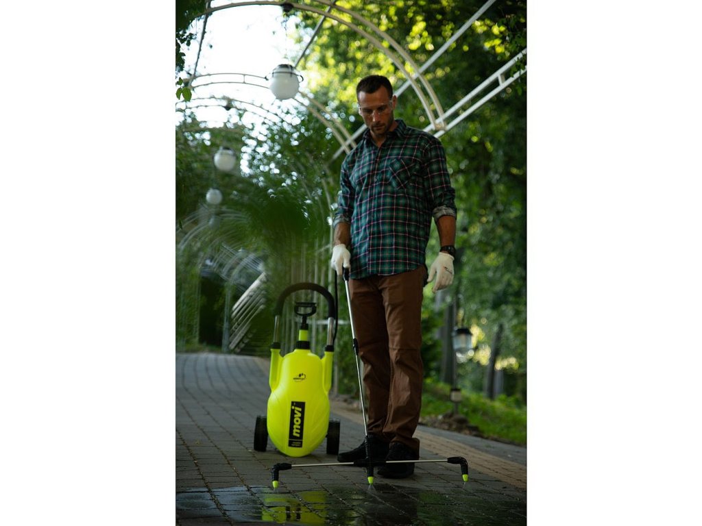 Postřikovač movi-16 je inovativní tlakové zařízení pro prostředky na péči a ochranu rostlin a tekuté hnojivo. Postřikovač na kolečkách lze použít do sadů, školek, skleníků, stejně tak i v průmyslu, kde je kapalina stříkána pod tlakem. Objem až 16 litrů umožňuje delší dobu práce bez stálého doplňování a komfort pohybu bez přenášení.