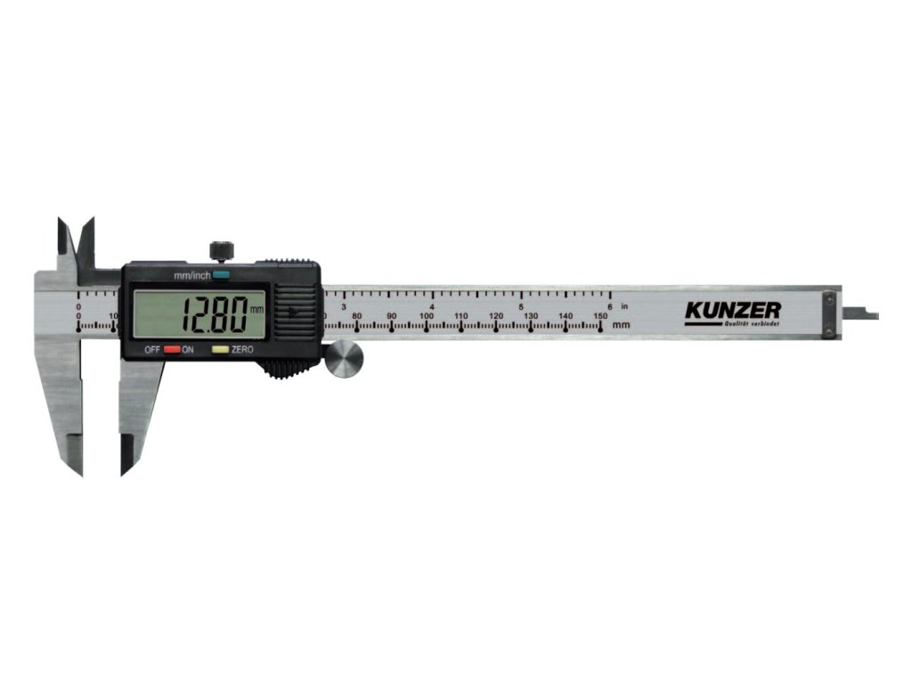 Elektronické posuvné měřidlo, tzv. šuplera, s přepínáním jednotek mm/palce a digitálním displejem – Kunzer 7EMS01Nepostradatelný nástroj pro přesné měření vnitřních i vnějších rozměrů, vzdálenosti a hloubky.