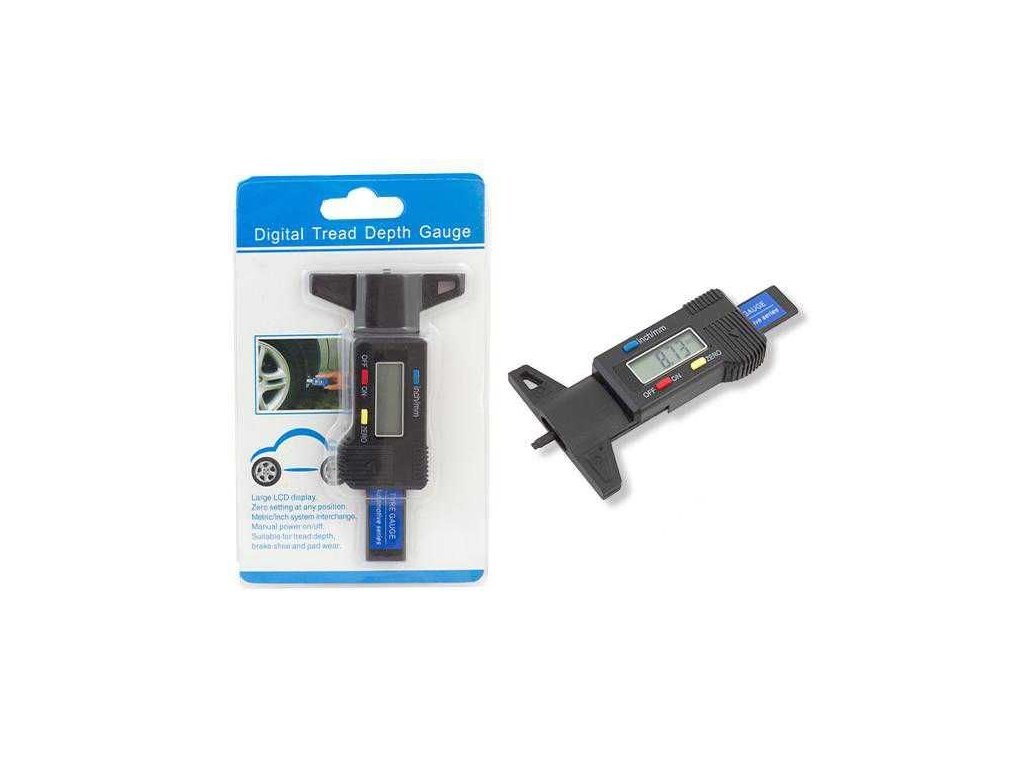 Posuvné měřítko -Šuplera pro měření hloubky dezénu pneumatik,digitální Napájení: SR44/LR44, Rozměry: cca 11x6x1,2cm, nulování v libovolné poloze, rozsah 0-25,4mm, pracovní teplota: 0°C--+ 40°C. Přesnost: 0,01mmManuál k produktu je ke stažení zde