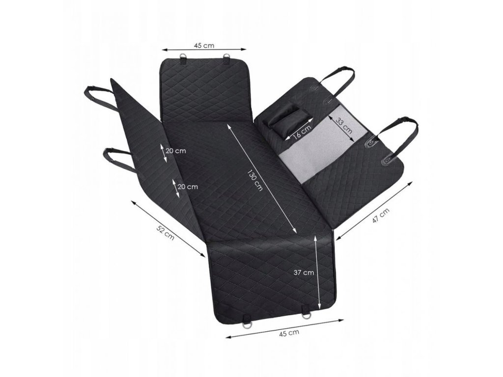 Potah je určený na zadní sedadlo. Díky potahu ochráníte sedačku před nejrůznějšími nečistotami, které se mohou snadno způsobit při cestování s domácím mazlíčkem. Kromě samotné sedačky ochráníte také vnitřek dveří a zadní část předních sedadel proti nečistotám a poškrábání. Postaráte se tak o svůj klid při cestování a jistě snížíte stres, který jízda v autě způsobuje mnoha zvířatům. Spodní strana potahu je pokryta protiskluzovou vrstvou, takže i při pohybu těžkého domácího mazlíčka a nerovném terénu zůstane potah na svém místě. Voděodolný materiál na spodní straně je nespornou výhodou, sedačka se nepromočí a snadno se udržuje v čistotě.