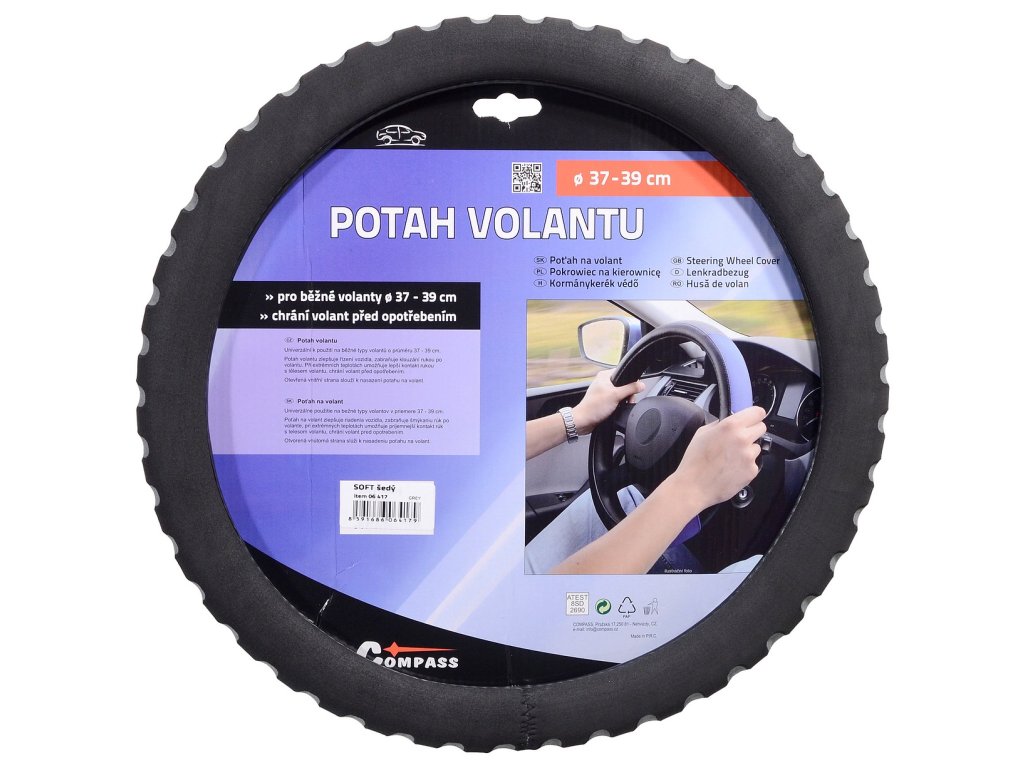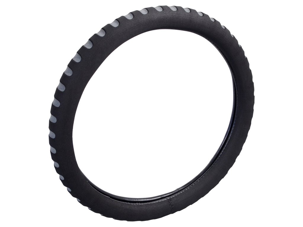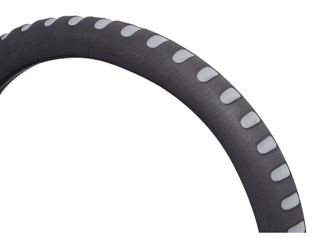 Pěnový potah určený k nasazení na volant o průměru 37-39cm. Příjemný do ruky. Barva černá s šedými prolisy.