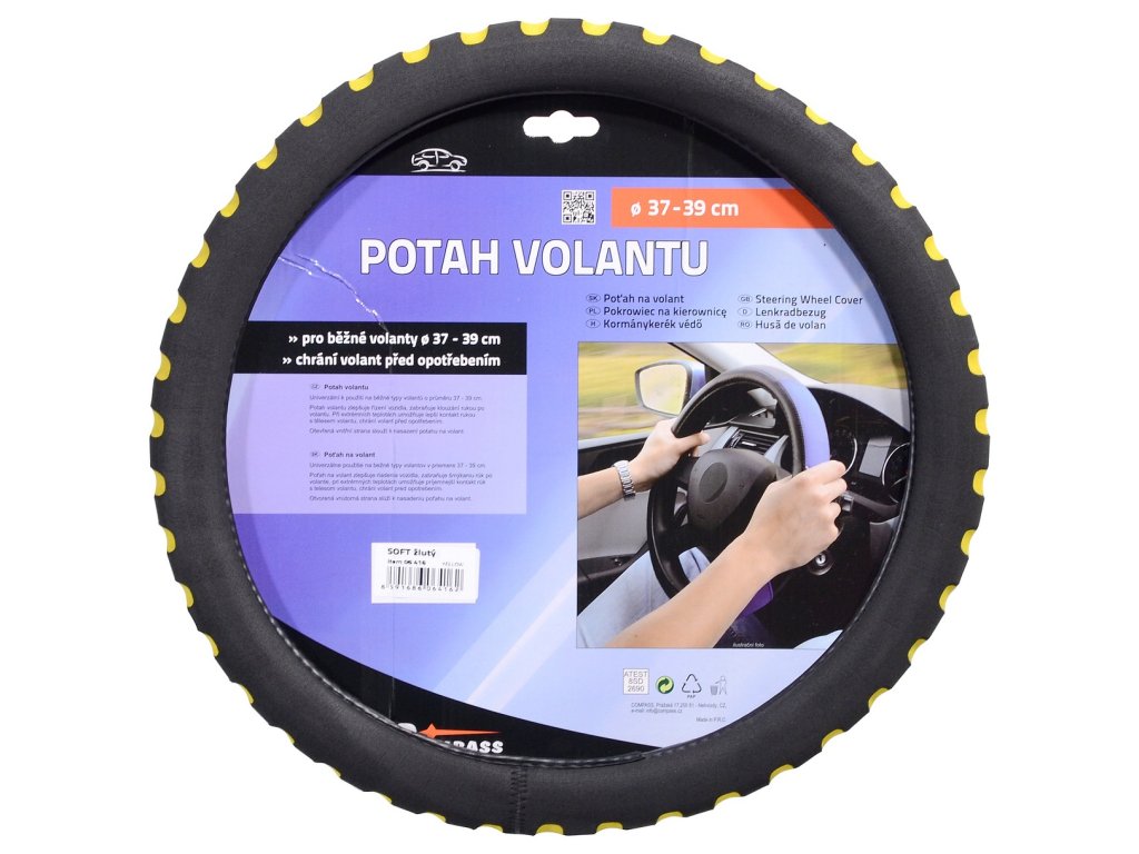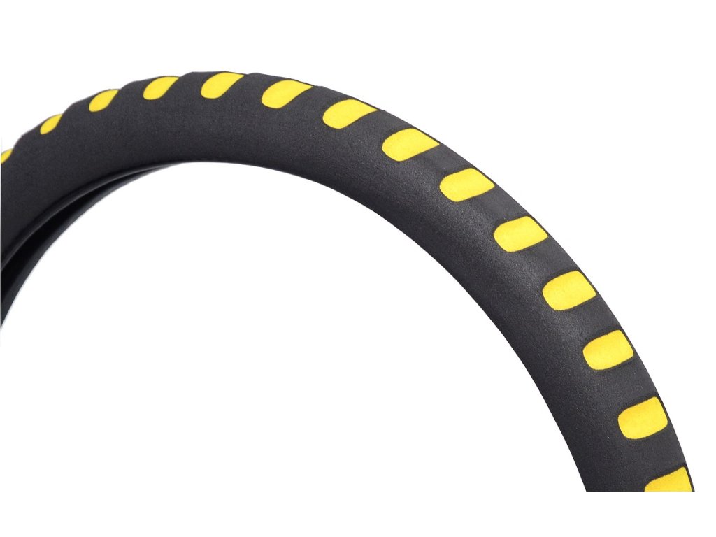 Pěnový potah určený k nasazení na volant o průměru 37-39cm. Příjemný do ruky. Barva černá se žlutými prolisy.