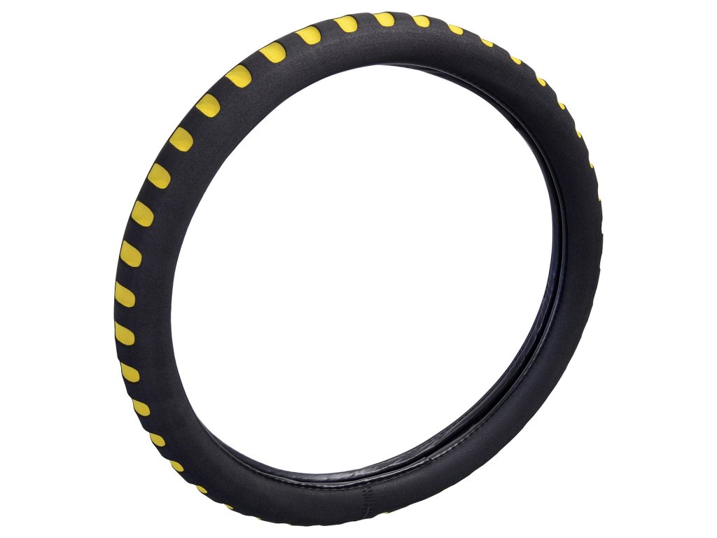 Pěnový potah určený k nasazení na volant o průměru 37-39cm. Příjemný do ruky. Barva černá se žlutými prolisy.