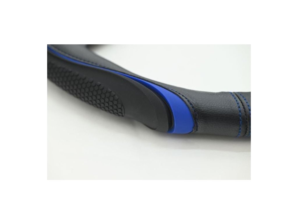 Potah volantu TEAR modrpro volanty 37-39cm Robustním a zároveň pohodlné provedení úchopové části. Zpracování na černém podkladu je dolpněné častmi se vzorem imitujícím karbon a prošíváním v modré barvě. Úchopová část je tvořena měkkou gumou v kombinaci černé a modré barvy. Příjemný na omak.Potah chrání volant před opotřebením a zlepšuje řízení, jelikož brání smýkání rukou.Doplňkové parametry