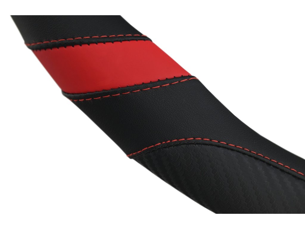 Potah je příjemný na omak, ergonomicky tvarovaný, s imitaci karbonu na bocích pro usnadněný úchop.