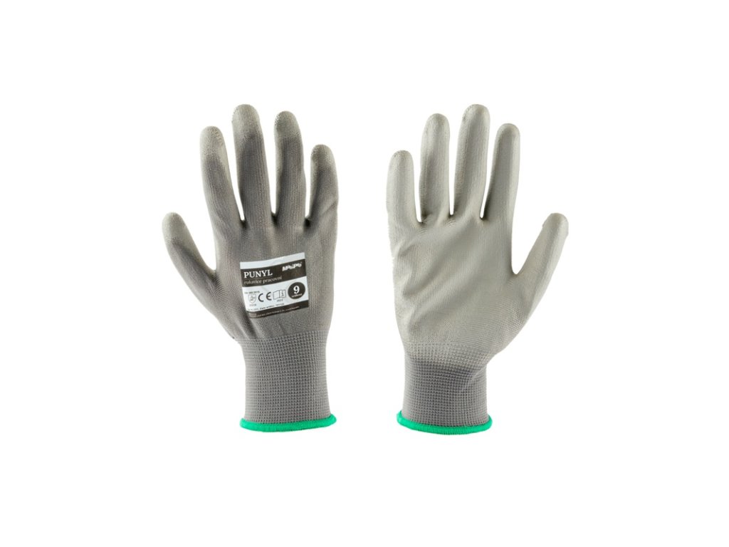 Povrstvené rukavice PUNYL šedé, v. 07"