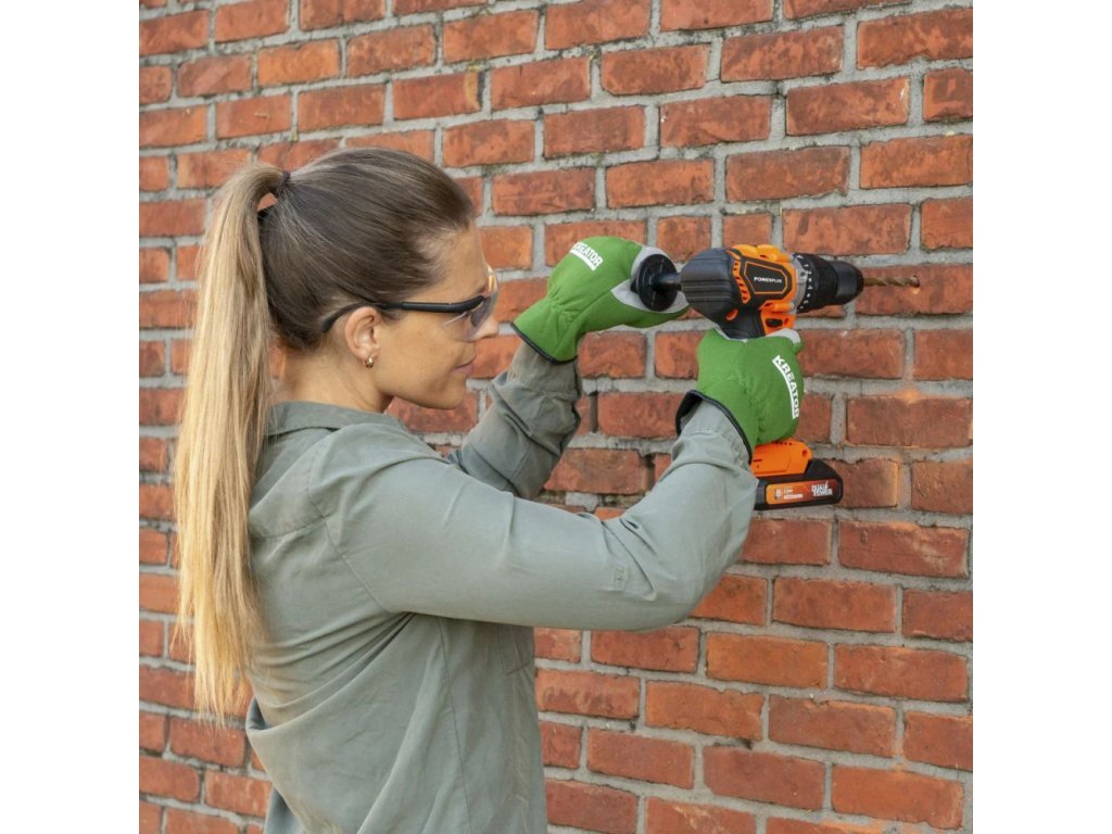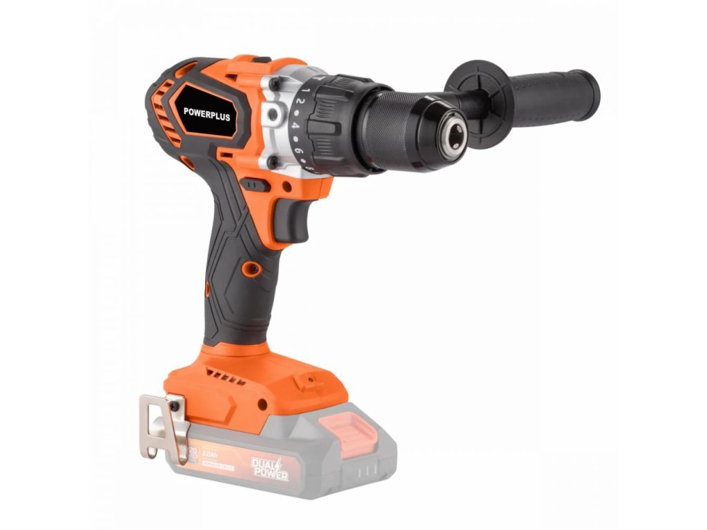 Tato akumulátorová 20V bezuhlíková příklepová vrtačka/šroubovák POWDP15250 od PowerPlus je ideální pro všechny náročné projekty v domě a kolem něj, které vyžadují šroubování nebo (příklepové) vrtání. S maximálním točivým momentem až 120 Nm je důležité při (příklepovém) vrtání vždy používat přídavnou rukojeť. Tím se zabrání vážným zraněním. Co můžete s touto příklepovou vrtačkou/šroubovákem dělat? Tato příklepová vrtačka/šroubovák je výkonný všestranný pomocník, který lze použít jak pro vrtání, tak pro šroubování. S jeho pomocí můžete bez námahy vrtat až 65 mm do dřeva, 13 mm do oceli a 16 mm do betonu. Vyberte si ze 2 různých nastavení rychlosti a 20 nastavení točivého momentu, abyste plně přizpůsobili nástroj vašemu projektu. Nejvyšší nastavení otáček (0 min-1 – 2000 min-1) je pro vrtání a nižší otáčky (0 min-1 – 600 min-1) pro šroubování. S maximálním točivým momentem 120 Nm tato příklepová vrtačka a šroubovák výrazně převyšuje své konkurenty z hlediska výkonu. Tento nástroj zvládne tvrdší materiály, dokáže pracovat s delšími šrouby a vrtat větší otvory. Praktický přepínač otáček vlevo/vpravo použijte k upevnění nebo povolení šroubů. Stroj je vybaven systémem pozvolného rozběhu, který způsobuje postupné zrychlení motoru. To je bezpečnější a poskytuje větší kontrolu. Pokud se něco pokazí, rychlé zastavení okamžitě vypne nářadí, aby byl zajištěn bezpečný provoz za všech okolností. Ochrana proti přetížení zabraňuje přehřátí a přetížení elektromotoru. Automaticky vypne motor, když dojde k prudkému zvýšení teploty. Přídavná rukojeť poskytuje ještě pevnější úchop a můžete ji připevnit vlevo nebo vpravo, takže nástroj můžete vždy uchopit v nejpohodlnější poloze. Stroj je dodáván bez baterie a nabíječky. Použít můžete baterie ze série DUAL POWER o napětí 20V a také i baterie o napětí 40V. Použití 40V baterie zajišťuje ještě delší dobu chodu stroje ve srovnání s 20V verzí.