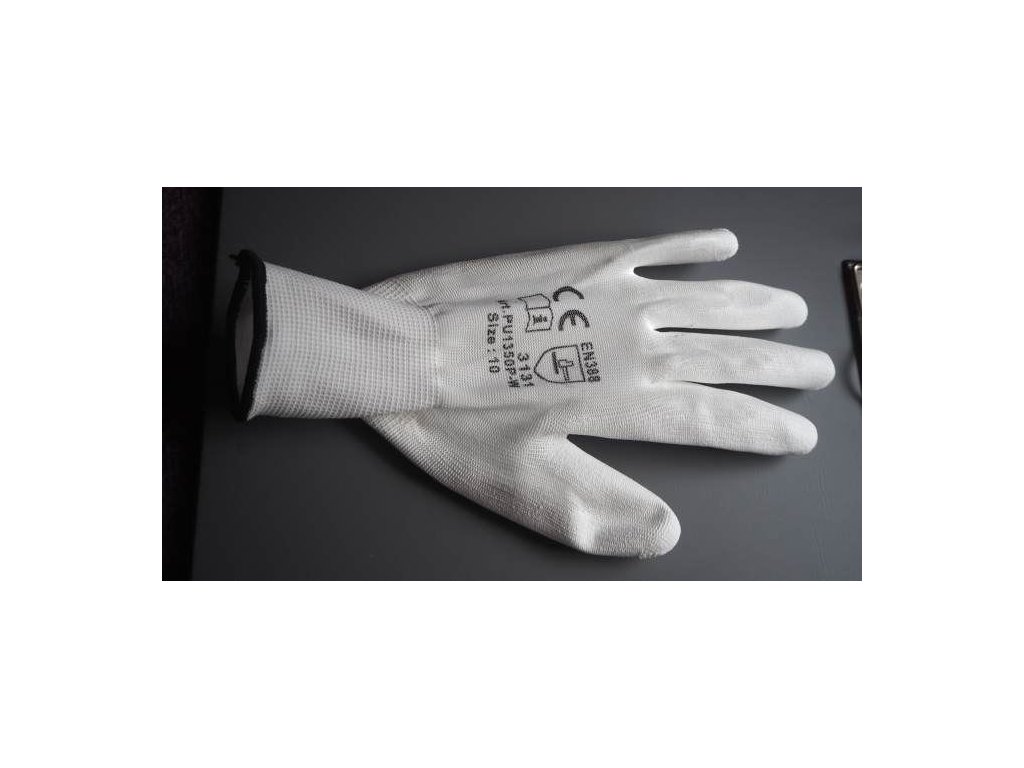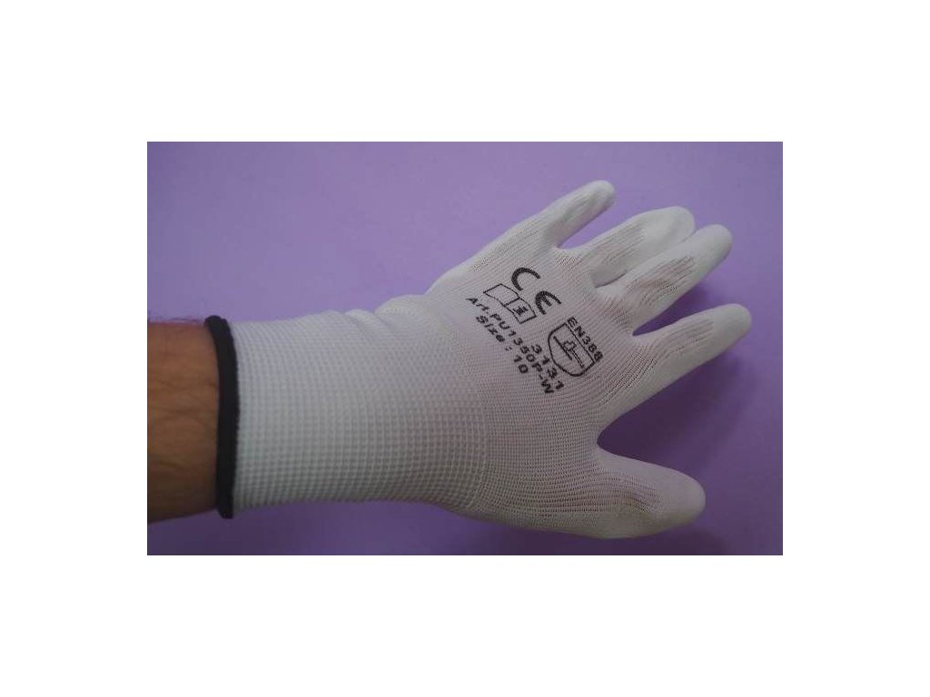 Prac. rukavice bezešvé s PU dlaní - velikost 10 (XL), bílé,10ks v bal Bezešvé nylonové prcovní rukavice. Dlaň s tenkou vrstvou PU (polyuretan). Mají vynikající odolnost a velmi dobrý úchop vhodný pro přesné úkony kde obratnost a prodyšnost jsou nezbytné.Manuál k produktu je ke stažení zde