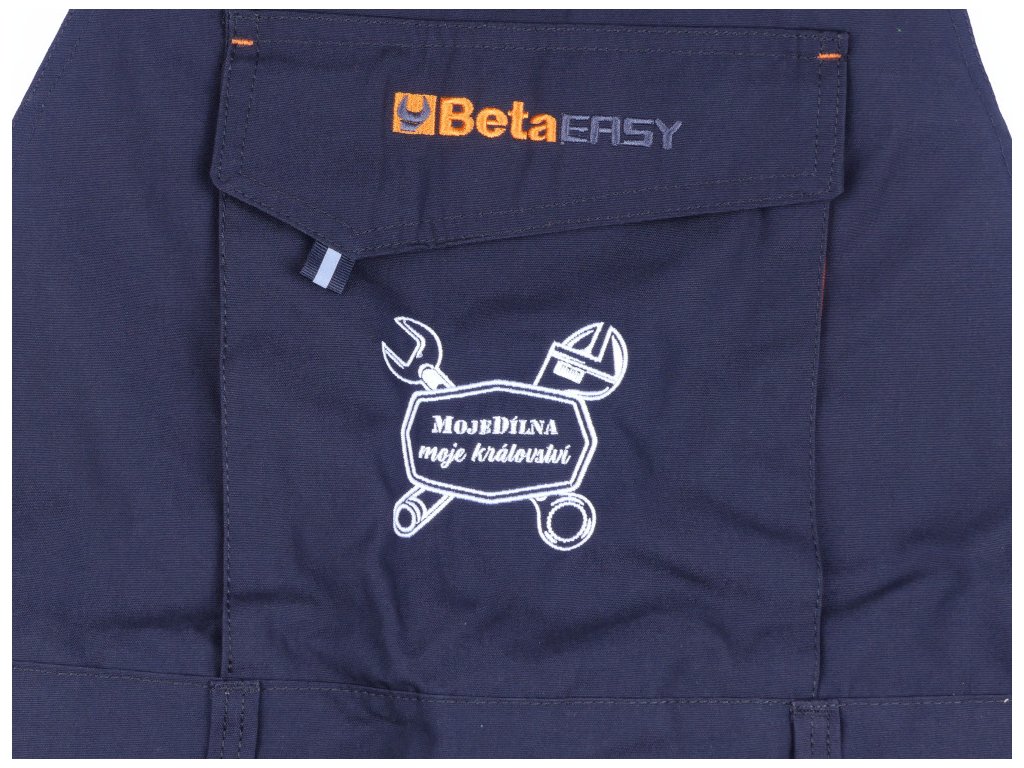 Pracovní kalhoty s laclem Beta Easy 7903G, šedé, s kvalitní výšivkou Mojedilna.cz a logem "Moje dílna moje království", různé velikosti.