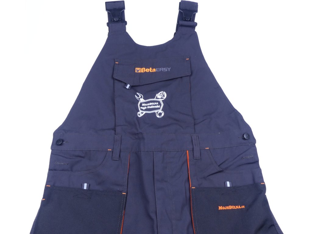 Pracovní kalhoty s laclem Beta Easy 7903G, šedé, s kvalitní výšivkou Mojedilna.cz a logem "Moje dílna moje království", různé velikosti.